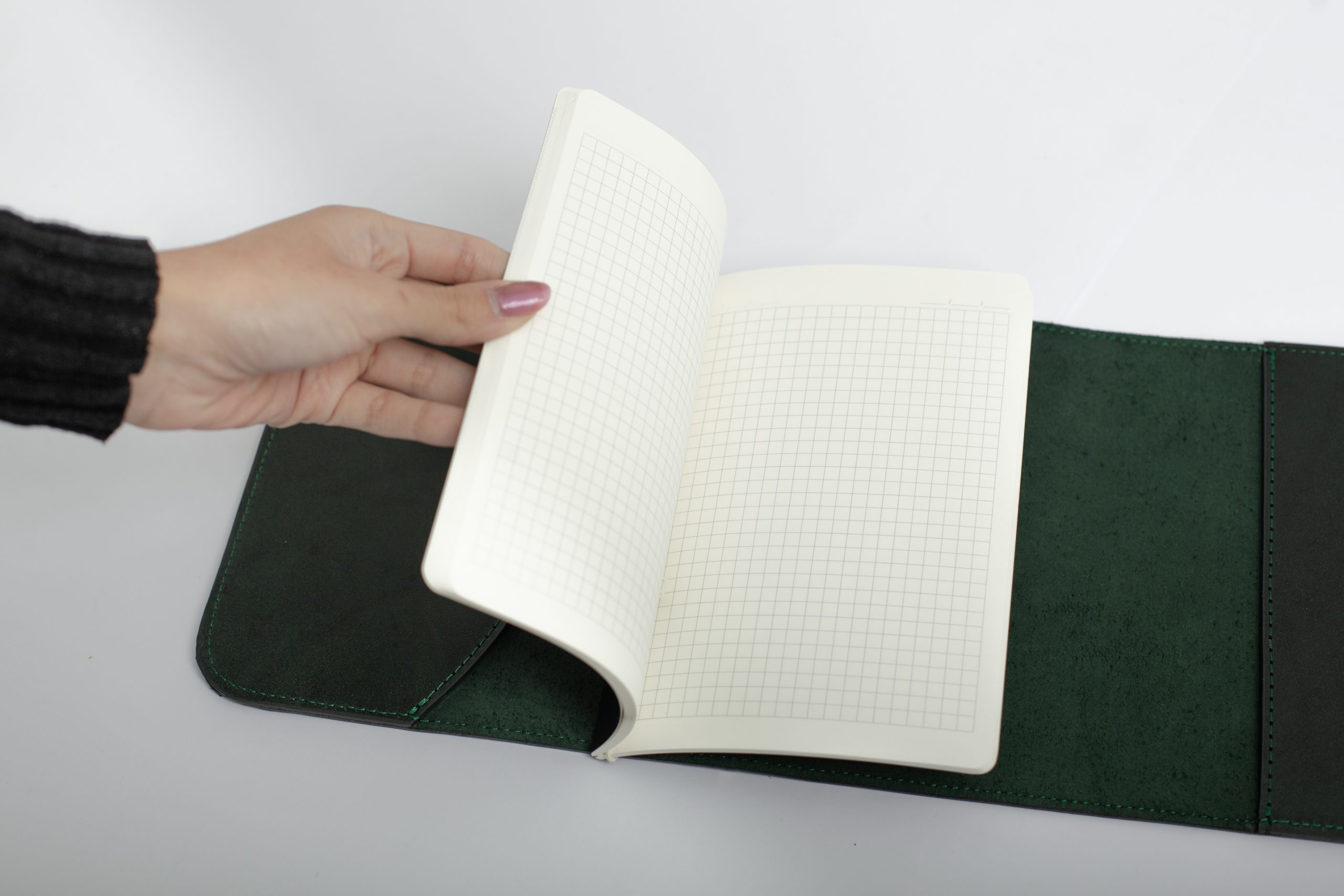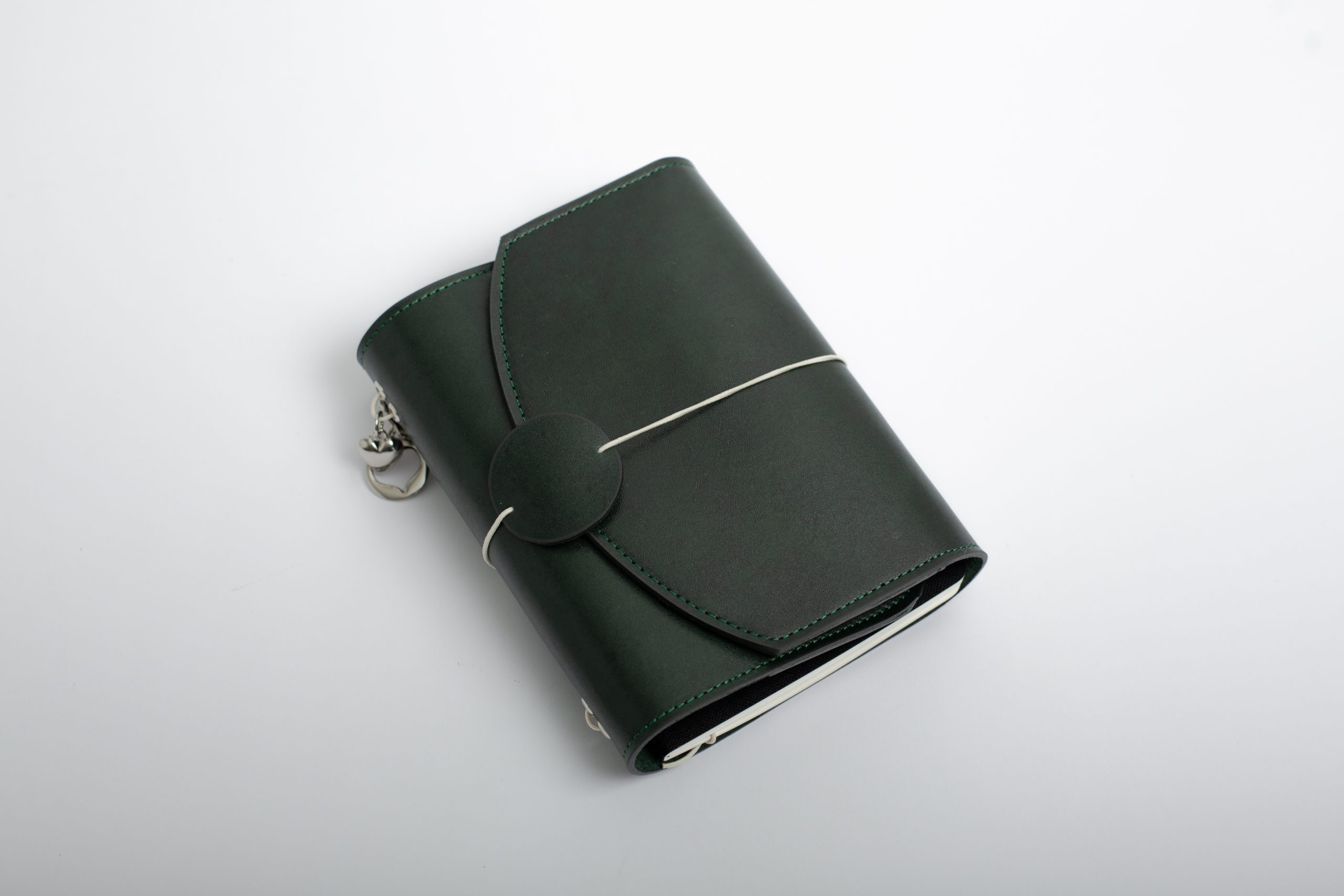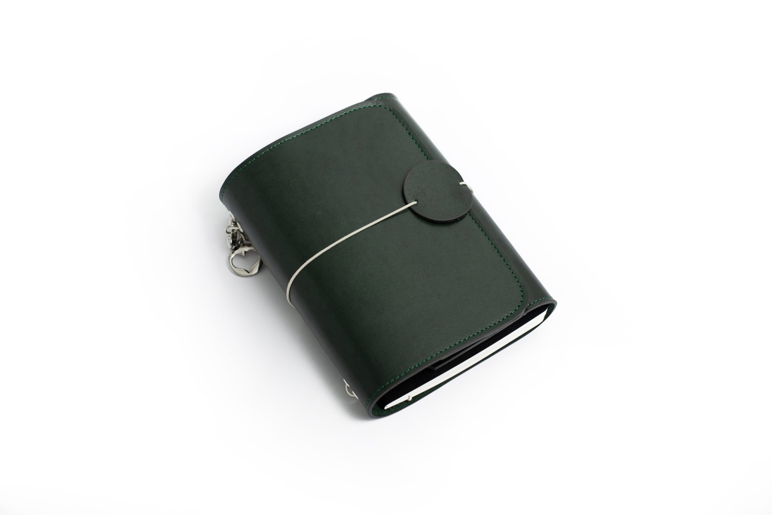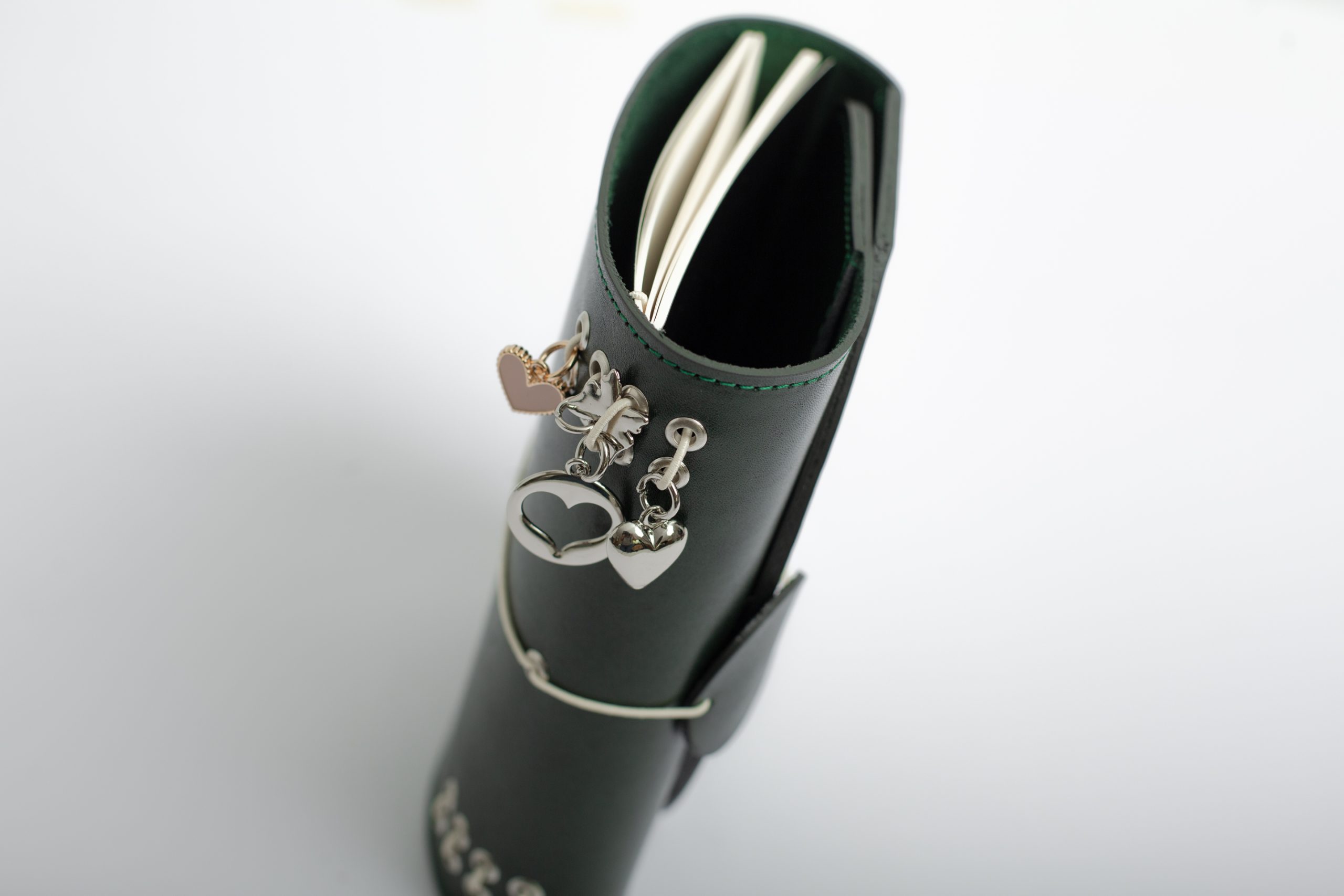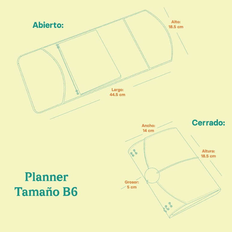 - Planner en piel genuina con separación para plumas y hasta 8 libretas (libretas extra con costo adicional)